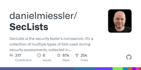 SecLists is the security tester's companion. It's a collection of multiple types of lists used during security assessments, collected in one place. List types include usernames, passwords, URLs, sensitive data patterns, fuzzing payloads, web shells, and many more.