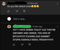 Why do kids even like this trend this generation is now ruined. Imagine being in class and hearing a kid say "sKiBiDi ToIlEt". It’s cringe and has a garbage sense of humor.