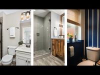 My bathroom is so small. See dimensions and pictures below. The main objects of this bathroom renovation is to make it look bigger and be strategic with storage space. A friend suggestion to go with big tile and extend the shower tile to the rest of the bathroom on the vanity and toilet side. Not sure how that would look. Perhaps putting some form of recess cabinet/shelves above the toilet space and the wall to the right of the mirror, next to the door. The layout stay the same (shower, toilet in the middle and vanity near the door), everything else can be changed. Do you guys have any suggestions for me? Thank you so much!