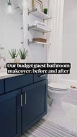 How we updated our small full bathroom on a budget, including before and after photos, what it cost, painting bathroom cabinets, and DIY bathroom renovation and remodel tips! Learn more about our small bathroom makeover here: https://jane-athome.com/guest-bathroom-remodel/ jane at home | decor and design · 7 · Explore · Home Decor · Bathroom Ideas ·