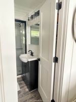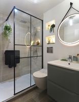 September 22, 2022 - Finding one inspiration can lead to so many bathroom remodeling ideas! Once the tub was removed we had a clear view from side to side. Angling the door gave the shower that extra square footage that allowed a small built in bench. We replaced the plastic ceiling fan/light combo with a chic black industrial light with seeded glass globe. The white shower fan is no longer the first thing you see. Before ...
