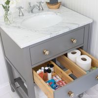 Paint on walls: Aesthetic White, ... bathroom remodel Shop for double vanities on Houzz ... 4. Cluttered to Crisp Bathroom at a Glance Who uses it: A couple Location: Ottawa, Ontario Size: About 45 square feet (4 square meters) Before. The 1980s renovation left these empty nesters with a cluttered, inefficient bathroom that didn’t match their updated kitchen nearby. ... After. A clean, streamlined design by Susan Ozipko of sO Interiors gives the couple function and storage in a small ...