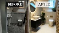 Our first remodel - tiny bathroom before /after. Total cost ~12k