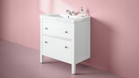 We have created a range of sets, complete with cabinets, sinks and faucets, so you can just choose the one you love and have your bathroom organized – and looking great – in no time. ... More optionsHEMNES / RUTSJÖNOption: HEMNES / RUTSJÖN, Bathroom vanity with sink & faucet, white, 37 3/8x21 7/8x37 "Option: HEMNES / RUTSJÖN, Bathroom vanity with sink & faucet, white, 25 1/4x21 7/8x37 "