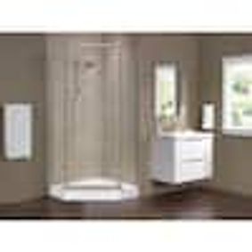 All I'm looking for is a basic corner shower Nothing designer, dont want to spend time tiling and waterproofing. Just want an all in one package thatll get the job done. I guess glass for the outside of it, but ill even settle for a curtain in the meantime.
