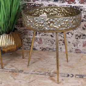 Gold side tables are perfect for use in living rooms next to sofas or armchairs, in bedrooms as elegant bedside tables, or in hallways as eye-catching accent pieces. The compact size and stylish design make them both functional and decorative, capable of elevating the aesthetic of any space with their timeless charm and opulent appeal.