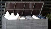 What are some things I need to keep in mind for this? I’m mainly worried about keeping the storage sealed from the rain. I’d like to avoid plywood for the top just for aesthetics. I could make the tabletop the lid or have the storage accessed from the side with doors. How would you go about this?