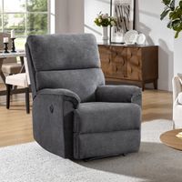 An electric reclining chair in granite fabric offering smooth gliding, swiveling, and easy positioning. ... A black PU fabric power recliner featuring cup holder, USB charger, and adjustable reclining for home theaters.