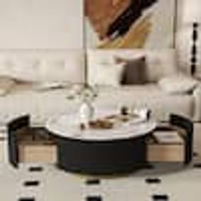 Modern Round Lift-Top Coffee Table Set with Storage & 3 ...