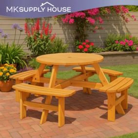 General tip — use protective covers when not in use for extended periods or during harsh weather to extend the table’s life. Yes. Round tables are often more efficient in compact spaces because the absence of corners improves flow. They make it easier to move around the area, especially on balconies, smaller decks, or irregularly shaped patios. Most outdoor dining chairs will pair well, but armless or slimmer chairs allow you to maximize the number of seats around the table.
