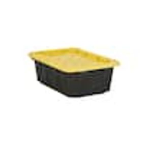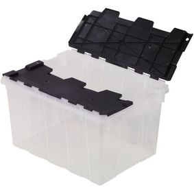 This HDX reinforced stackable 102L. heavy-duty tough tote will handle any storage job ranging from general storage needs to extreme storage jobs. The tote includes a Clarified Polypropylene clear base and durable recycled polypropylene yellow reinforced snap-fit lid to secure and protect your valuables.