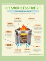 A smokeless pit works by air coming in from the bottom and feeding the fire. Some air gets trapped in between a metal ring and the stone blocks. It gets heated and forced up, which shoots it out of holes in the top of the ring for “secondary combustion”, burning off the smoke.