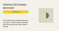 Generate custom Tailwind CSS box shadows in seconds. Our free shadow generator supports Tailwind v3 and v4: arbitrary values, inset shadows, and v4 presets (shadow-sm, shadow-lg, inset-shadow-xs). Adjust offset, blur, spread, and color with real-time preview, then copy the Tailwind class or raw CSS.
