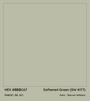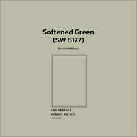 SW 6177 Softened Green paint color by Sherwin-Williams is a Green paint color used for interior and exterior paint projects. Visualize, coordinate, and order color samples here.