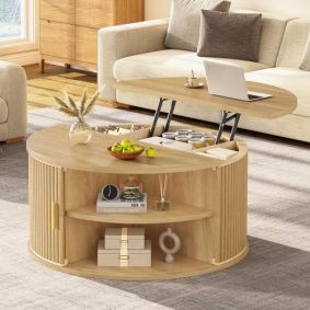 Discover a selection of round oak coffee tables with modern, contemporary designs. Explore options with storage shelves and stable, solid wood construction.