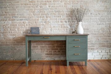 Consider choosing a solid wood desk with drawers. All drawers in our desks feature durable, dovetailed drawer boxes.