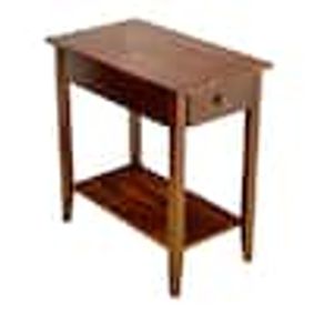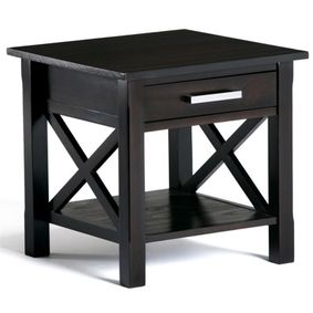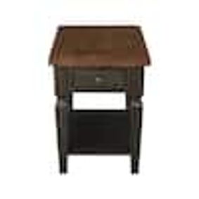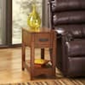 A transitional end table in honey brown with a drawer for storage and handcrafted solid wood construction. ... A medium oak cabinet end table with a shaker wood design. A medium oak cabinet end table with a shaker wood design. ... "This is a great small end table. Would have loved for it to be just a little bigger but overall very satisfied" ... "I purchased two for my living room to go with the square coffee table I’d purchased earlier.
