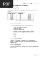 Grouped and ungrouped data (Find out mean, median, mode) - Free download as Word Doc (.doc / .docx), PDF File (.pdf), Text File (.txt) or read online for free. This document contains 6 examples of grouped data with frequency distributions. Students are asked to calculate the mean, median, and mode for each dataset.