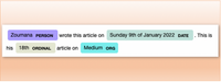 This approach used a dictionary which I compiled from the wikidata API search API. I did a first-pass and sent all the strings through Wikidata search to get the top 10 matching entities for each search string. E.g.,