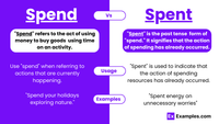 spend ... n. 1. an amount of money spent on something: doubled the spend on computers. 2. The spending of money; expenditure: the management of spend.