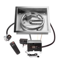 10" Square Remote Control Fire Pit Burner Kit, Stainless Steel, Electronic Ignition, Propane