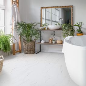 And as far as install on this brand I can do a very large bathroom 8 by 15 and go around vanity, toilet, shower, whatever in about an hour - I have installed this brand and similar 25+ times. It cuts with a knife like drywall (or you can use a mitre saw) and snap clean. Out of all of the flooring choices this is the fastest to install, the most durable, and least amount of prep. The downsides are it is a bit cold and just might not have the look that most people want.