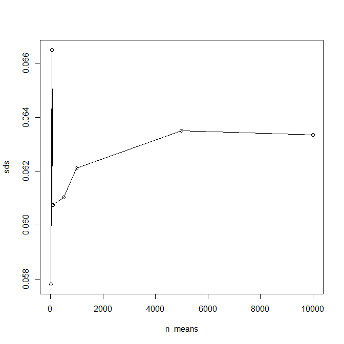 So, the histogram above represents the distribution of means of 10,000 samples⦠that we constructed from our initial sample. Empirically, we can determine the standard deviation of this (sampling) distribution (which is our standard error of the mean):