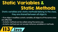 May 19, 2025 - In Java, different elements can be static: Variables โ€“ A single shared variable for all instances of a class. Methods โ€“ Methods you can call without creating an object.