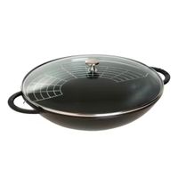 14.5"-37cm-5.7L with cooking accessories. ... The 37 cm STAUB enamelled cast iron wok in matt black, a clever blend of Asian and French cuisine, is ideal for frying, searing, sautéing and steaming.
