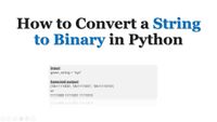 September 12, 2023 - ... # initialize a binary string bString = "10101" # conversion value = int(bString, 2) # display the converted value print(value) ... In Python, we may use the bin() function to convert a string to binary.