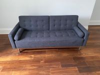 This is a grey Structube futon sofa, perfect for a living room or spare room. It's in used-good condition, and ready for a new home.