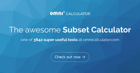 August 18, 2025 - This subset calculator can generate all the subsets of a given set, as well as find the total number of subsets. It can also count the number of proper subsets based on the number of elements your set has, or maybe you need to know how many subsets there are with a specific number of elements?