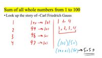 In this video, we will learn how to find the sum of the first 100 natural numbers in a very easy way. What is the sum 1+2+3+....+100? We will use the formula...