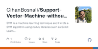 Answer from Jacques Kvam on Stack OverflowI am looking for SVM code without using any library. (Raw SVM code for Sentiment analysis). Can anyone help me in this?