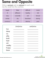 Synonyms and Antonyms | Interactive Worksheet | Education.com