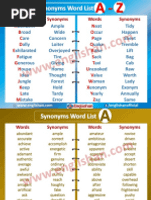 Synonym-Words-List-A-Z-PDF - Free download as PDF File (.pdf), Text File (.txt) or view presentation slides online. The document provides a list of words and their synonyms in three columns. It contains over 200 entries spanning multiple pages with words from A to Z and their matching synonyms.
