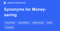 Synonyms for money-saving include economical, miserly, frugal, sparing, thrifty, parsimonious, tight, stingy, mean and scrimping. Find more similar words at wordhippo.com!