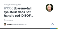 [baremetal] sys.stdin does not handle ctrl-D EOF markers · Issue #3356 · micropython/micropython