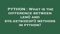 getsizeofcalls the object’s__sizeof__method and adds an additional garbage collector overhead if the object is managed by the garbage collector.See recursive sizeof recipe for an example of using