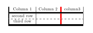 \begin{tabular}{!{\VRule[2pt]}c!{\VRule}c!{\color{red}\VRule[3pt]}c!{\VRule}}