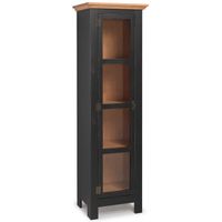 If you are all about display and you are storing a collection of beautiful items, then choose a fully glassed narrow cabinet. These types can be found short with wood siding and glass faces, while others are tall with three-sided glass door facings.