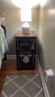 I have a loft-style apartment, with a strange floorplan. As a result, our queen size bed is tucked into a nook which provides 1'ish of clearance on either side. This is fine for my partner and I getting in and out of bed, but has also meant we can't find end tables. Right now we're making due with some mini organizers I had, but these are very utilitarian and don't match our much more boho-adjacent style.