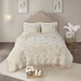The Decoty taupe 3 Pc king/California king comforter set provides an alluring shabby chic update to your bedroom. This globally inspired comforter features a cotton face and reverse with a tufted chenille medallion centered on top of the bed. The 2 matching shams coordinate with the cotton comforter to complete the boho look. Due to the nature of the chenille fabric, some shedding will occur naturally in the first 3-4 washes. Items in the set may come in a rolled or compressed packaging, which will need to be fluffed up or steam ironed before use to remove wrinkles.