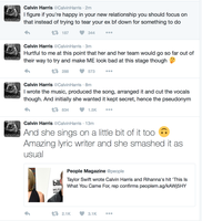 I feel like it was Taylor who wasn't feeling it anymore and wanted out instead of Calvin and the last nail in the coffin was probably when he said that he doesn't see a collaboration happening between them ever. That must have been hurt her because even though she had agreed to not reveal her involvement in the songwriting process, having her "SO" just outright deny a possibility of then working together that too when they already had... it was just wrong.