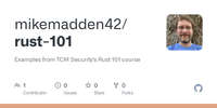 GitHub - mikemadden42/rust-101: Examples from TCM Security's Rust 101 course · GitHub