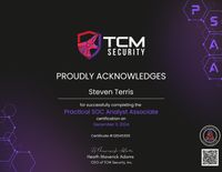 December 12, 2024 - Let me start by saying that I am delighted to announce that I have successfully PASSED TCM Security’s PSAA exam. There is not much I can say about the exam itself in the interest of maintaining the integrity of the exam, so I will only comment on my experience in very general terms. First off, the SOC 101 course which is available on the monthly TCM subscription or when you purchase the exam is such an amazing course.