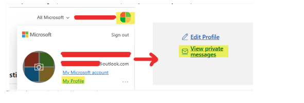 Below are the steps to open private message: To View private messages option > click on Profile Picture at top of the right side > Select My Profile option.