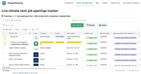 10,000+ up-to-date job openings from over 600 climate tech & clean tech companies, updated daily. ClimateTechList is the web's most comprehensive climate, climate tech, clean tech, and green jobs site for professionals looking to work on climate change. Access our live job tracker with 10,000+ job openings from over 600 high-impact climate tech/clean tech companies, updated on a daily basis.