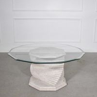 Unusual textured faux stone stacked helix spiral coffee table with beveled hex glass top. Can be used with or without the glass top. Substantial piece, very heavy and sturdy. Coordinating side tables and and dining table available in separate listing. Wonderful vintage condition with small chip to