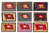 The variation of the flag includes broader wings and a green banner underneath. ... The Royal Standard of the King of Thailand is a yellow square field with the national emblem in the centre. The Standard of the Queen adds a tail to the flag.